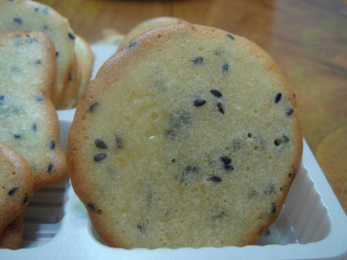色拉油(80克) / 蛋清(2个) / 白砂糖(80克) / 黑芝麻(适量) / 橙皮(适量)