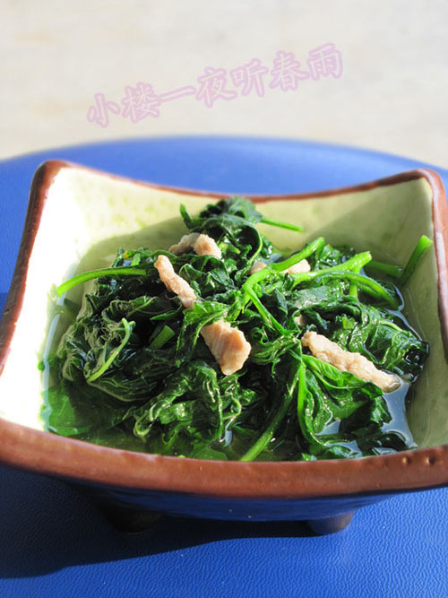 及以下步骤:肉丝放生抽,花生油拌匀,稍腌入味。 猪肉切丝备用。 肉丝放生抽,花生油拌匀,稍腌入味。 猪肉切丝备用。 肉丝放生抽,花生油拌匀,稍腌入味。 猪肉切丝备用。 肉丝放生抽,花生油拌匀,稍腌入味。 锅烧热水,划入腌好的肉丝。 肉丝稍变色,放入白花菜。 白花菜叶软后,加入盐,花生油调味即可。