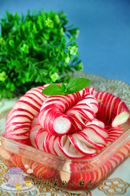 这个萝卜属于酸甜口味,清脆异常。佐粥下饭,开胃消食! 蓑衣刀法,切出来灰常的出彩! 这道小凉菜挑战的不仅仅是你的味觉,还包括你的视觉!通体粉红色,是不是特别的诱人呢?