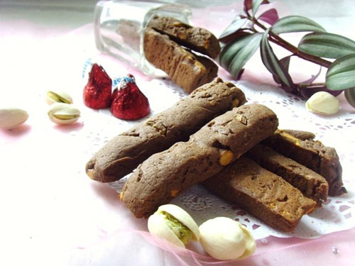参照君子方子做了这款饼干,只是把原方中的杏仁改为开心果,哈哈,人生苦短,快乐开心就好,生活就像一部书,忘却烦恼,多点开心,人才会有精神、、、 这次在造型上不够细腻漂亮,这款特显手工活,本人笨拙啊,做的不咋样、、需不断学习,不断改进,不断进步、、、 开心巧克力棒】