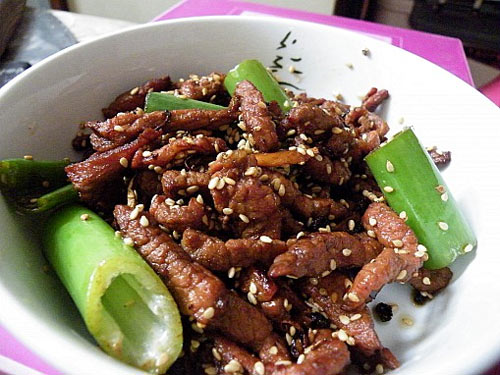 加了糖和芝麻,牛肉的味道会更好,零食一样的菜。