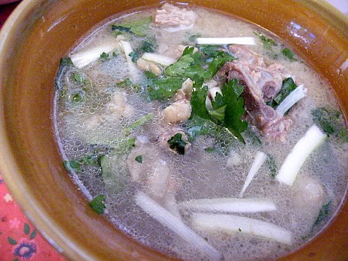 及以下步骤:香菜和葱切碎。 羊汤盛碗里,加盐,香菜和葱。 羊肉,羊排放清水泡去血水,多换几次水。 炒锅置火上,烧干后饭放羊油。 煸出羊大油。 加足量水,放羊肉,羊排,放姜片。 大火烧开,撇去血沫。 小火炖一个小时。捞出羊肉,只留羊排。喜欢吃肉,就把大块肉切碎,重新放回锅里。继续煮几分钟即可。 香菜和葱切碎。 羊汤盛碗里,加盐,香菜和葱。