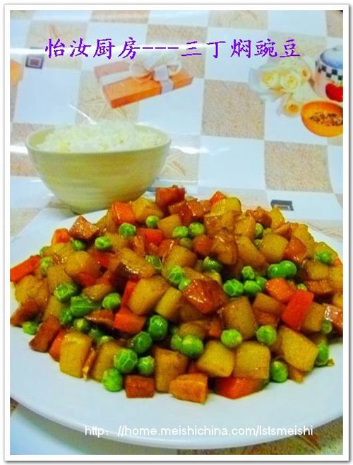 三丁焖豌豆烹饪方法 图片大全及制作所需厨具设备是网友推荐小编整理所得,是网友的分享推荐,是饮食文化的资源共享,中华美食文化是中华文明的具体践行,美食三丁焖豌豆烹饪制作就是在传承中华文化。