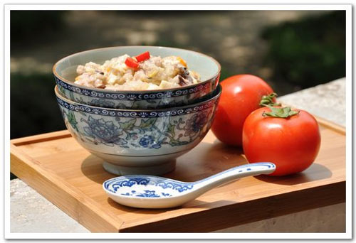 在南昌只要呆上过一段时间,就会发现南昌有个很特别的地方。南昌的小街小巷特别的多,哪怕是最繁华的中山路也一样。马路上可以是车水马龙,可是只要你一转身进了个小巷子或是小街,你就发现那里非常的安静,狭小。那样的巷子只够两个人对面穿行,老旧的青石板和周围矮小的棚户房都在述说着他们当年的历史。可是就在这些不宽的街道上却总可以看到挑着木桶沿街等待客人的小商户们,桶子里面放着其实就是南昌人以前只有过年才能吃到的福羹。因为是挑着沿街叫卖的,所以不会提供座椅板凳,吃的人就是拿着个一次性的塑料碗和勺子捧在手上吃。所以往往在每天上班前的那段时间里面,你都可以看到一个木桶边围满了端着福羹吃的上班族们,我想这也绝对是南昌的一大民俗景观吧! 其实叫这个名字是我自己想象出来的,南昌话里面是叫做fu羹,这个fu字发第三声。我问了很多人,这个字用文字如何表达,很少有人说的清楚。后来终于问到了一个南昌郊区的人,他说fu字其实就是糊的意思,我一想也对咯,这个羹里面有各种各样的材料,最后用红薯粉勾芡调制成糊状物,确实应该叫做糊羹,不过今天是母亲节,而我记得无论是我母亲还是我母亲的母亲,都很喜欢吃这个糊羹,我想既然又是过年的时候的吃食,就取它的谐音福吧!