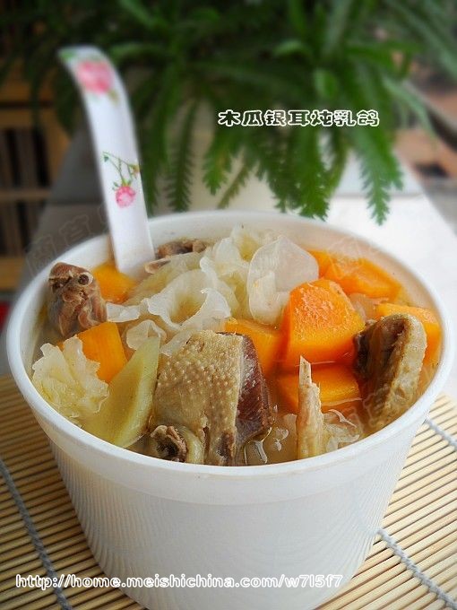 木瓜银耳炖乳鸽烹饪方法 图片大全及制作所需厨具设备是网友推荐小编整理所得,是网友的分享推荐,是饮食文化的资源共享,中华美食文化是中华文明的具体践行,美食木瓜银耳炖乳鸽烹饪制作就是在传承中华文化。