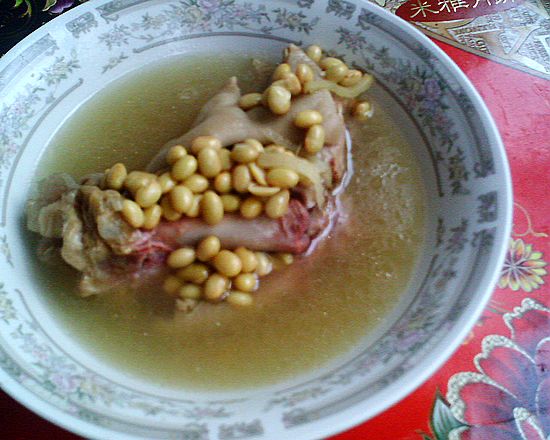 1、猪手【猪前蹄】1个、大豆100g、姜适量。