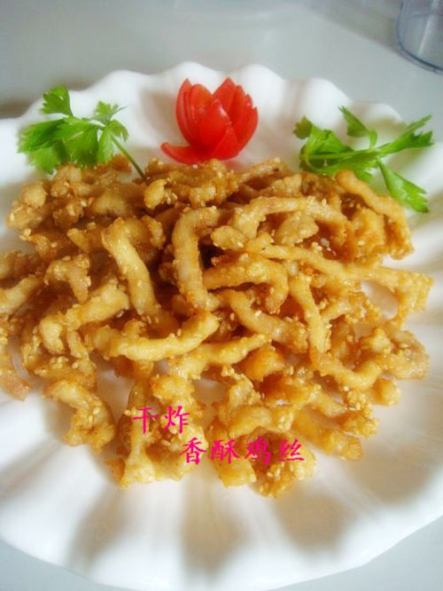 干炸鸡丝烹饪方法 图片大全及制作所需厨具设备是网友推荐小编整理所得,是网友的分享推荐,是饮食文化的资源共享,中华美食文化是中华文明的具体践行,美食干炸鸡丝烹饪制作就是在传承中华文化。