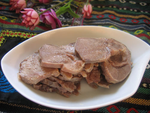5、煮好的口条捞出冷却切片。