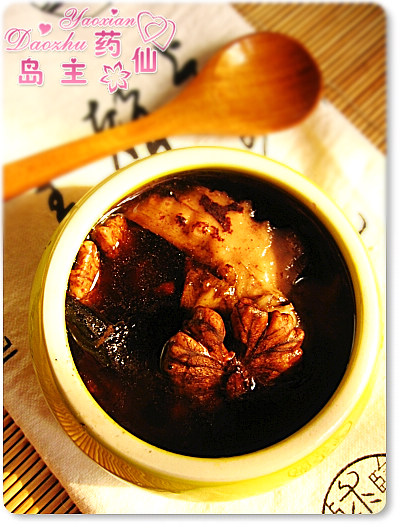 及以下步骤:先把当归、首乌、核桃仁、枸杞子用水浸泡冲洗备用。 把猪瘦肉及乌鸡洗净,汆水沥干水分备用。 先把当归、首乌、核桃仁、枸杞子用水浸泡冲洗备用。 把猪瘦肉及乌鸡洗净,汆水沥干水分备用。 先把当归、首乌、核桃仁、枸杞子用水浸泡冲洗备用。 把猪瘦肉及乌鸡洗净,汆水沥干水分备用。 先把当归、首乌、核桃仁、枸杞子用水浸泡冲洗备用。 把猪瘦肉及乌鸡洗净,汆水沥干水分备用。 把所有材料放进炖盅里面。 加入1000毫升的水,隔水炖2小时调味即可饮用。
