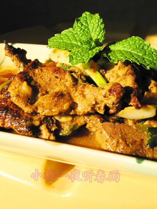 由于有鸡蛋清腌过,用水淀粉勾欠这份煎肝外煎里嫩,保持了猪肝的水分,十分可口。