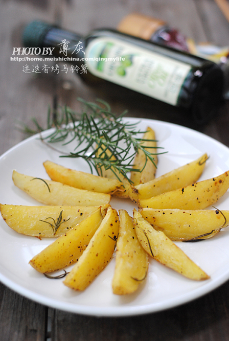 迷迭香,因为迷上她的名字,也迷上了她香氛如岚。不说香味,光听起来、读出来都会觉得很美~~还有一点,迷迭香的花语代表着爱人之间的忠诚,这样美妙的香草,一定要拥有。 我家里这盆迷迭香我种了一年了,长势良好,也安全过冬,最近大有疯长的趋势,于是剪下来几小枝烤了盘马铃薯。其实就是烤土豆了,但是我觉得迷迭香烤马铃薯要比迷迭香烤土豆听起来好听多了。 无污染的香草搭配初榨橄榄油和现磨黑胡椒,烤制后的马铃薯风味很独特,外层焦香,内心柔软哦,做零食下午茶吃也不错,不过需要提醒的是这个意式做法不是每个人都能接受(比如我家那位长着中国胃的小棉袄她爸),不喜欢迷迭香味道的可以不加。小宝宝们可以直接抓着吃,这可要比油炸的薯条健康的多了。烤好后,灰的女儿马上吃了两块,也算小小缓解了我因为光线不足拍不出马铃薯质感的郁闷。