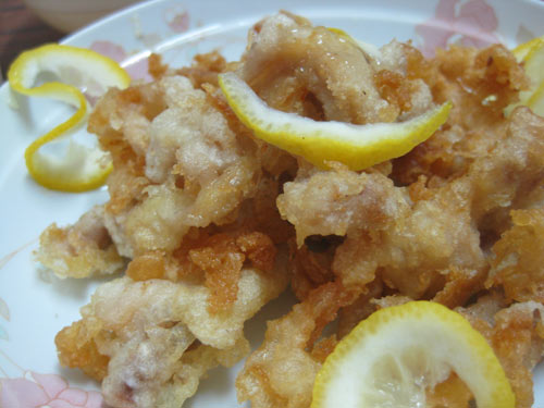 鸡腿的嫩滑,裹上了炸粉下了油锅,沾上酸甜可口的柠檬酱汁,一口下去"嘎吱"香脆。