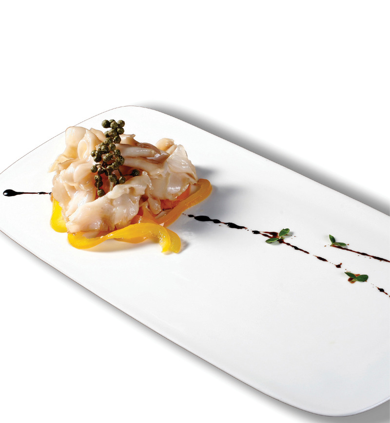 加拿大象拔蚌菜肴 特点:主料口感嫩爽,清香适口,装饰简洁明快