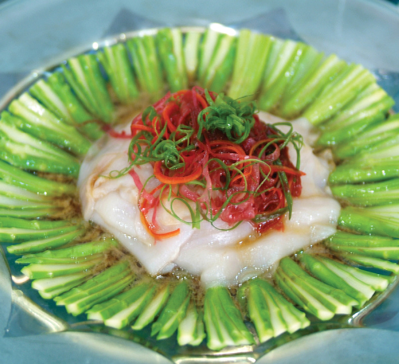 3、将上述原料装盆,加入豉油汁,略淋热油即可。