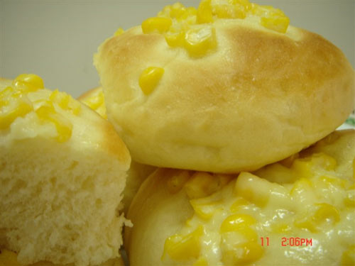 最近买了台面包机,几乎每天都在捣腾它,通过透明窗看着小小的面团慢慢的长大,心里感觉又奇妙又开心。我们这里现在是玉米的旺季,菜市场的小摊子里摆满了玉米,好新鲜啊!叫人不得不买它们。我想起冰箱里有瓶做水果沙拉用剩的沙拉酱,于是做了这款玉米沙拉包。吃下去的时候有股淡淡的柠檬香味,玉米粒甜甜的,面包软软的,真好吃!
