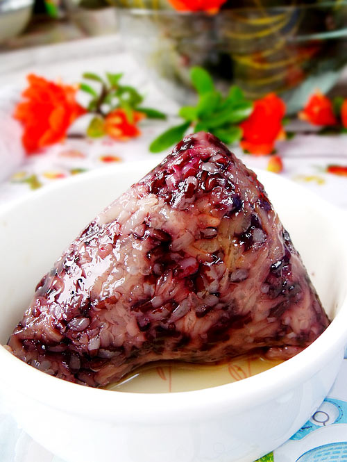 据说紫色的和黑色的都是补血的。这款粽子,用的是紫糯米,包上干红枣和桂圆。女的吃了应该比较好。