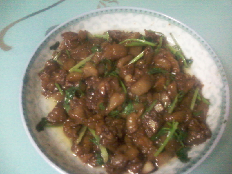 5、放酱油 翻炒 加盖 闷2分钟 放面酱 翻炒2分钟 放糖 味精 盐 翻炒2分钟 加香菜翻炒3分钟 建议买个计时器就方便多了。