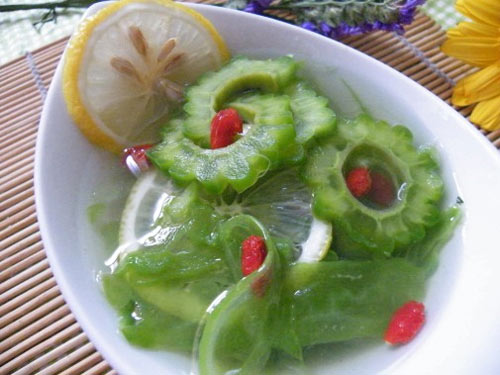 及以下步骤:苦瓜去瓤清水跑一段时间,据说苦味会减淡。 削去皮(可不削),皮不扔掉。 苦瓜去瓤清水跑一段时间,据说苦味会减淡。 削去皮(可不削),皮不扔掉。 苦瓜去瓤清水跑一段时间,据说苦味会减淡。 削去皮(可不削),皮不扔掉。 苦瓜切片。 苦瓜放入容器,加枸杞和柠檬片。 倒入雪碧,恰好淹没苦瓜即可。 放冰箱冷藏数小时。