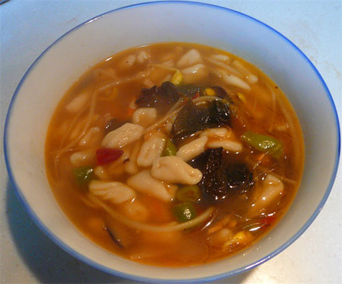 6、出锅,吃时加些辣酱或蒜,汤汤水水,热辣热辣,真过瘾。