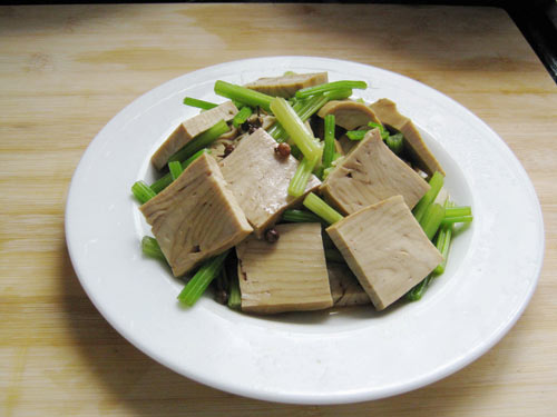 1、芹菜,葱,豆干,葱竟然忘记放了。