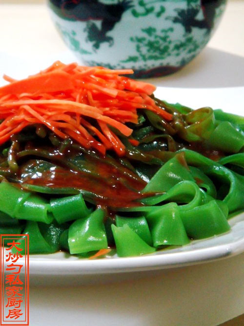 大炒勺的这款私家消夏美食“翡翠凉粉”就做好了。吃起来既可以增加维生素,又十分爽滑好吃,配以自己喜欢的调料,在炎炎夏日真是一种享受,呵呵!供朋友们参考!