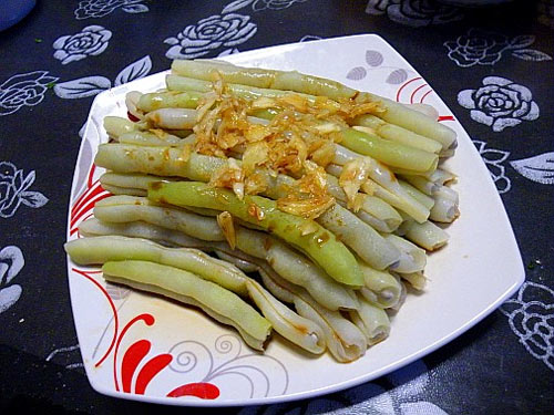 蒜泥芸豆是夏天去大排档,羊肉馆等必点的一个小菜。咸咸的,辣辣的,带点淡淡的醋味,很是开胃。