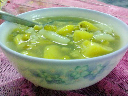 在炎热的夏天最适合来一碗冰镇绿豆糖水了,即清热解毒又一饱口服,真爽!!绿豆比较凉,一般寒底体质的人不适合多吃,在服药期间最好不吃哦! 绿豆配上番薯,味道很不一样哦··亲们快来尝尝吧··