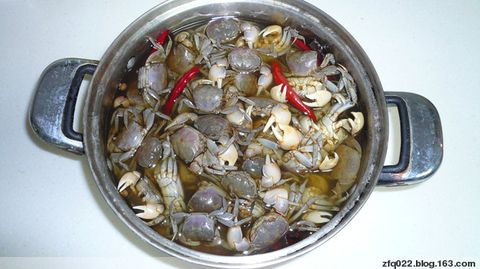 及以下步骤:腌制一宿,第二天就可以吃了。鲜美!咸! 你见过螃蟹叶子么? 它长不大,这就算是大个的了,一般一斤能称三十个左右的样子吧。 你见过螃蟹叶子么? 它长不大,这就算是大个的了,一般一斤能称三十个左右的样子吧。 来张个人照。 再来个特写! 风大,一小时只掏了这些。 用花椒,大料,葱段,蒜姜片,枸杞子,料酒,黄酒,鸡精,大量的盐,一起烧开后放凉,把洗净的螃蟹叶子放入料水中。盖盖子,否则它们嫌咸,到处爬呀! 腌制一宿,第二天就可以吃了。鲜美!咸!