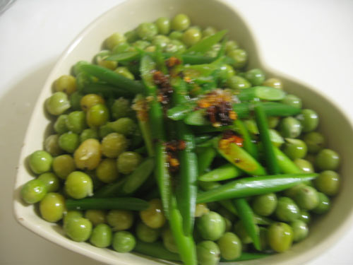 前天在书上看到这道菜,眼前一亮阿。有营养又好吃,还能防病防菌。 春天吃这个再好不过了。 百度了一下,豌豆居然有这么多钟叫法。圆身的又称蜜糖豆或蜜豆,扁身的称为青豆、荷兰豆、小寒豆、淮豆、麻豆、青小豆、留豆、金豆、回回豆、麦豌豆、麦豆、毕豆、麻累、国豆等。 营养也不一般。含蛋白质,膳食纤维 ,维生素a ,胡萝卜素,硫胺素,核黄素,尼克酸,维生素c ,维生素e ,钙 ,磷 ,钾 ,钠 ,碘 ,镁 ,铁,锌,硒 ,铜 ,锰 等多种营养成分。 而且,在豌豆荚和豆苗的嫩叶中富含维生素c和能分解体内亚硝胺的酶,可以分解亚硝胺,具有抗癌防癌的作用。还具有抗菌消炎,增强新陈代谢的功能和防止便秘,清肠作用。 再看蒜薹,蒜薹中所含的大蒜素、大蒜新素,可以抑制金黄色葡萄球菌、链球菌、痢疾杆菌、大肠杆菌、霍乱弧菌等细菌的生长繁殖。 蒜薹含有糖类、粗纤维、胡萝卜素、维生素a、维生素b2、维生素c、尼克酸、钙、磷、等成分,其中含有的粗纤维,可预防便秘。蒜薹含有辣素,其杀菌能力可达到青霉素的十分之一,对病原菌和寄生虫都有良好的杀灭作用,可以起到预防流感,防止伤口感染和驱虫的功效。 这么多的营养和功效,还不赶快多多吃啊! 这道菜的特点是:色艳味美,脆嫩可口。