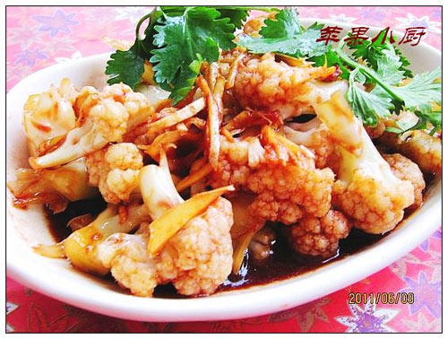 及以下步骤:加入姜丝、盐拌匀腌制二十分钟以上,吃时装盘入香菜叶点缀。 菜花撕成小朵用沸水焯至断生。 捞出后过凉。 菜花撕成小朵用沸水焯至断生。 捞出后过凉。 姜切成细丝。 捞出沥水后放入盆中,加入腐乳汁。 加入麻辣椒油。 加入芝麻油。 加入姜丝、盐拌匀腌制二十分钟以上,吃时装盘入香菜叶点缀。
