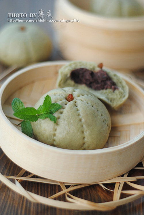 上周煮了一锅红豆沙,放在冰箱里冷冻了起来。喜欢自己做的豆沙馅,不会像超市里卖的那么甜,而且带一点红豆皮味道更好,而且还是膳食纤维,做面点西点都很好,单独吃也很美味哒。 这次做的抹茶豆沙包,是第二次做了。上一次做的时候,包子生胚已经放在蒸锅里了,结果发现锅里忘了加水,于是把蒸屉拿出来加水,却不小心把包子胚掉在水里了,蒸好了味道是不错,就是毁容了。所以这次又做了一次,用的是全麦粉,南瓜造型,深的小朋友喜欢,而且健康更多一点,至于味道,抹茶和豆沙是绝配,你们懂的哦~~