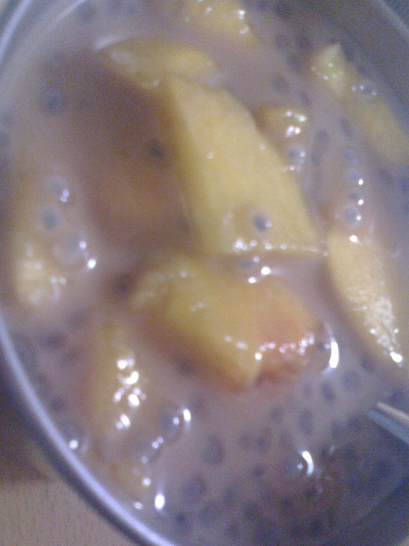 及以下步骤:兰香子适量(1平勺左右),用温水泡发。取细筛滤去杂质(无则可省略)后放入干净容器内。 开水泡红茶包,凉至温热时,与牛奶混合(本人1:1,可按个人口味调整),再加入可可粉(2勺),搅拌均匀至可可粉完全融化。(若认为麻烦,此步可用速溶巧克力奶茶代替)。 兰香子适量(1平勺左右),用温水泡发。取细筛滤去杂质(无则可省略)后放入干净容器内。 开水泡红茶包,凉至温热时,与牛奶混合(本人1:1,可按个人口味调整),再加入可可粉(2勺),搅拌均匀至可可粉完全融化。(若认为麻烦,此步可用速溶巧克力奶茶代替)。 兰香子适量(1平勺左右),用温水泡发。取细筛滤去杂质(无则可省略)后放入干净容器内。 开水泡红茶包,凉至温热时,与牛奶混合(本人1:1,可按个人口味调整),再加入可可粉(2勺),搅拌均匀至可可粉完全融化。(若认为麻烦,此步可用速溶巧克力奶茶代替)。 兰香子适量(1平勺左右),用温水泡发。取细筛滤去杂质(无则可省略)后放入干净容器内。 开水泡红茶包,凉至温热时,与牛奶混合(本人1:1,可按个人口味调整),再加入可可粉(2勺),搅拌均匀至可可粉完全融化。(若认为麻烦,此步可用速溶巧克力奶茶代替)。 取黄桃(2个),在晾凉奶茶过程中,去皮取果肉,切块,放入装兰香子容器中。 奶茶冷却后冲入兰香子中即成。