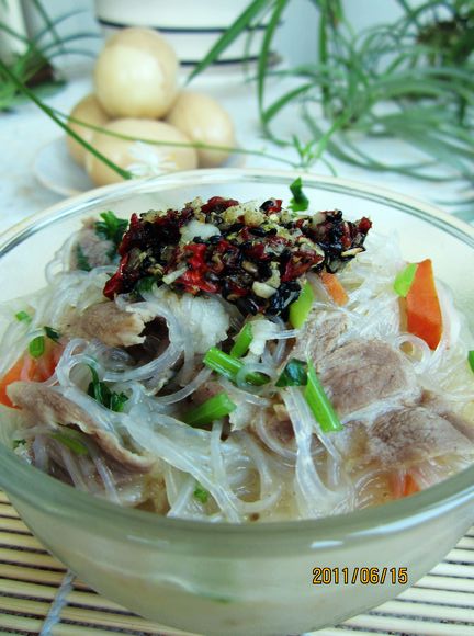 一次偶然发现了做酸辣粉的方法,但我家的酸辣粉,同正宗的酸辣粉的做法肯定是 要有差别地! 因为,咱根本就不知道正宗的酸辣粉的做法,但是我的酸辣粉味道也不错,来尝尝哦! 那一次,俺家孩他爸做羊肉粉丝汤时,刚好家里面还有做油泼拉面剩下滴麻辣油,于是就加上了一些,又加上适量陈醋,呵呵,,居然就出现传说中酸辣粉的味儿了,如果你感兴趣可以试试我的方法哦。 这个方法还有一个好处就是,宝贝可以吃到好吃的羊肉粉丝汤,而我和他爸吃的却是酸辣粉!!
