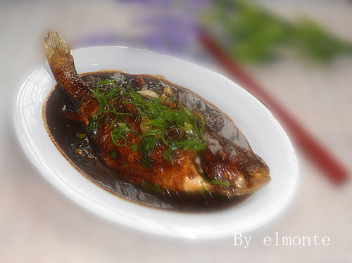 黄花鱼是lg姐姐带来的,她每次都带2-3箱的黄花鱼来,把我家的冰箱塞得满满的,有时候看着冰箱真有点郁闷呢!上网查了下鲁菜中有这酱烧的,就试做了,咸鲜好吃,相当下饭呢。 黄花鱼含有丰富的蛋白质、微量元素和维生素,对人体有很好的补益作用,对体质虚弱和中老年人来说,食用黄花鱼会收到很好的食疗效果。黄花鱼含有丰富的微量元素硒,能清除人体代谢产生的自由基,能延缓衰老,并对各种癌症有防治功效。