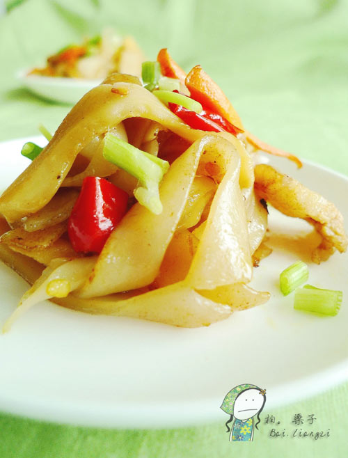 及以下步骤:酸笋、胡萝卜切丝 猪肉切片 泡椒切段儿 河粉事先弄散。 先放胡萝卜和泡椒段儿爆出酸辣味道。 酸笋、胡萝卜切丝 猪肉切片 泡椒切段儿 河粉事先弄散。 先放胡萝卜和泡椒段儿爆出酸辣味道。 酸笋、胡萝卜切丝 猪肉切片 泡椒切段儿 河粉事先弄散。 先放胡萝卜和泡椒段儿爆出酸辣味道。 接着放猪肉片,炒香。 再接着放酸笋丝,翻炒。 放入事先弄散的河粉,快速的翻炒,防止粘锅。 起锅前放卤水(没有就放酱油),盐,鸡精调味儿。起锅前,撒葱花儿。