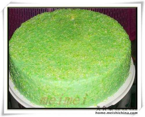 及以下步骤:面糊到入铺了油纸的烤盘。 放入预热好的烤箱。180°c,40分钟。 蛋糕考好后,冷却脱模。等分切3蛋糕片。 蛋糕外层馅料做法: 煮至浓稠。(要一直不停搅拌不然会糊低) 将一份(11)倒入烤模里。 把蛋糕周边切去少许,放在(12)里。 待冷一些一层一层的倒入海绵蛋糕里。放入冰箱冷藏后,脱模干椰丝加入一点香兰精拌均撒在蛋糕体即可。 成品图@@双亲节快乐。 成品图@@双亲节快乐。