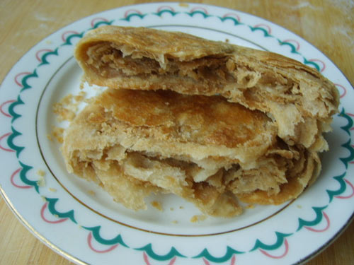 及以下步骤:将面粉300克加入少许发酵粉合成稍软的烙饼面,放一边醒着。 炒锅做火上小火放入油100克热后撒入面粉随撒随翻炒,至出香味儿,停火,放一边凉凉备用。注意:火不要大了否则容易胡。 将面粉300克加入少许发酵粉合成稍软的烙饼面,放一边醒着。 炒锅做火上小火放入油100克热后撒入面粉随撒随翻炒,至出香味儿,停火,放一边凉凉备用。注意:火不要大了否则容易胡。 将面粉300克加入少许发酵粉合成稍软的烙饼面,放一边醒着。 炒锅做火上小火放入油100克热后撒入面粉随撒随翻炒,至出香味儿,停火,放一边凉凉备用。注意:火不要大了否则容易胡。 将皮面赶成长方片,尽量薄点儿,撒上盐或糖(按自己口味)。然后摊上油酥面,努力摊韵。然后卷成卷 然后分成十个剂子,捏紧两边口,压扁,赶成包子皮,加上备好的料,封好口,赶成烧饼型。 放入烤箱,中火烤10分钟,翻面,再烤10分钟,出炉。 掰开看,是不是很酥呀。