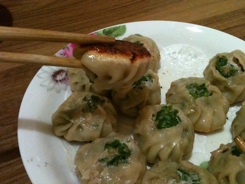 制作美食韭菜生煎小笼包。