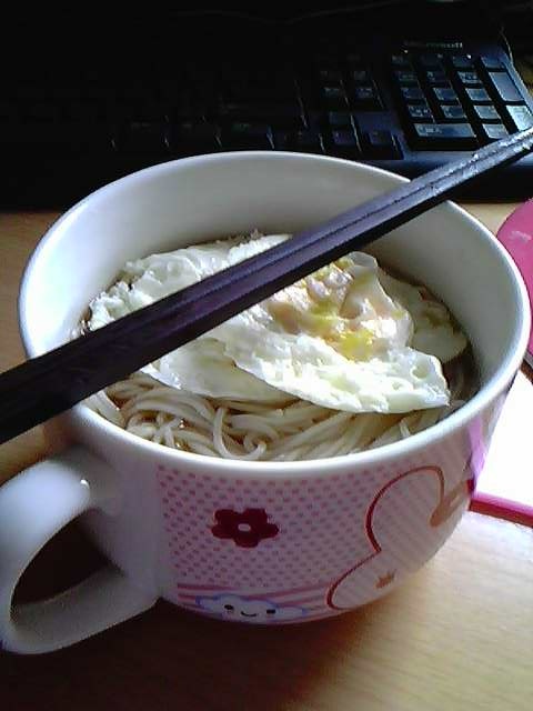 有时候在家里没有东西吃,就喜欢煮一碗酱油汤面,以前都是吃妈妈做的,现在自己做了~