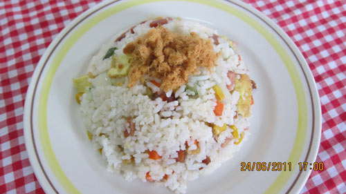 前几天我煲了鸡汤,可我那个小环蛋说他不想喝鸡汤,想吃炒饭。所以我只好特别为他炒了一盘7 彩杂锦炒饭給他,条件是他必须喝完一小碗的鸡汤。他妥协了,为了他喜欢的炒饭。我的炒饭很简单,材料和做法如下: