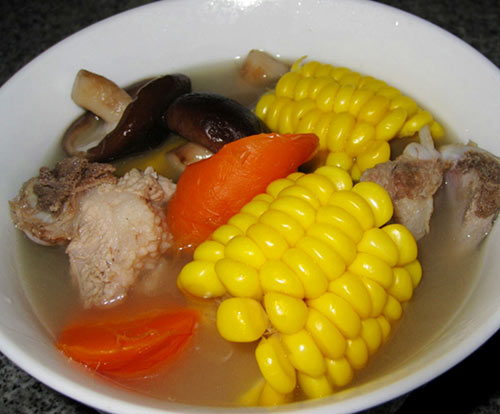 及以下步骤:放入香菇、玉米。 烧开几分钟后,加入胡萝卜。 大火烧滚,撇去泡沫,转小火炖30-50分钟,出锅加适量盐即可食用。 姜洗净用刀拍一下,备用。 骨头洗净在开水里焯一下,捞出沥干水分。 另起锅,姜块和冷水一起放进锅内。 待水开后放入焯好的骨头。 放入香菇、玉米。 烧开几分钟后,加入胡萝卜。 大火烧滚,撇去泡沫,转小火炖30-50分钟,出锅加适量盐即可食用。