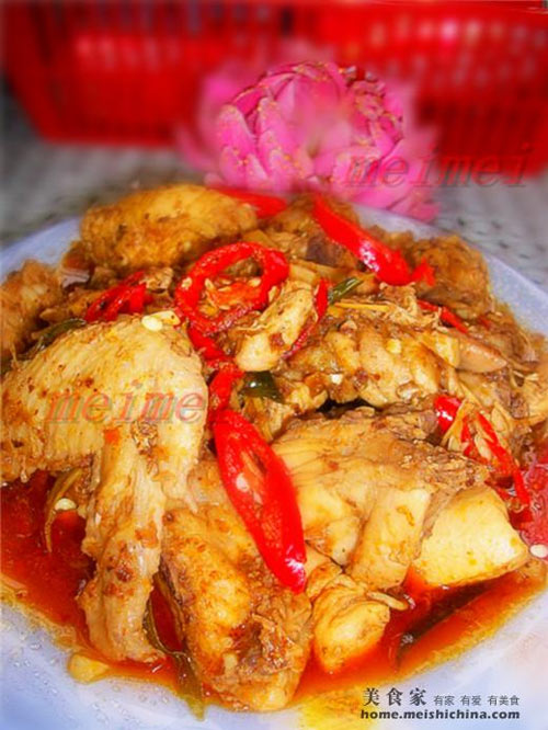 及以下步骤:倒入适量的清水。加入适量的鸡精粉,盐及糖。 放入红辣椒丝大火继续煮至汤汁滚就行了。 成品图@@香茅很入味好吃。 加入香茅及香叶炒出味。 加入辣酱,继续翻炒。 鸡洗净剁小块,用盐和胡椒粉腌30分钟,将鸡肉块下锅炒。 鸡肉大约快熟透了。 倒入适量的清水。加入适量的鸡精粉,盐及糖。 放入红辣椒丝大火继续煮至汤汁滚就行了。 成品图@@香茅很入味好吃。