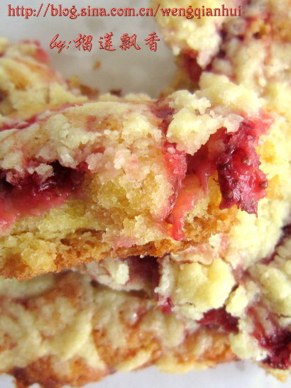 及以下步骤:面粉和泡打粉混合过筛,加入黄油里,用橡皮刮刀轻轻搅拌均匀,成为蛋糕糊。 蛋糕糊倒入模具中,4-5分满即可。 在蛋糕糊上铺一层碎草莓。 在蛋糕糊的上部轻轻搅拌一下,让碎草莓和蛋糕糊混合在一起,不需要非常均匀。 表面均匀地撒上一层酥皮。 烤箱预热180℃,上层,烤到表面上色后,把温度降低到150度,烤盘移到下层,烤焙30分钟左右。 秀秀自家种滴草莓。 表面均匀地撒上一层酥皮。 烤箱预热180℃,上层,烤到表面上色后,把温度降低到150度,烤盘移到下层,烤焙30分钟左右。 秀秀自家种滴草莓。