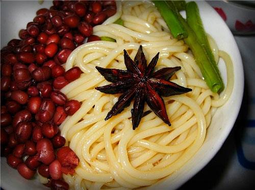 盐(适量) / 酱油(适量) / 香油(适量) / 生姜(适量) / 花生油(适量) / 豆角(300g) / 大蒜(三瓣) / 八角茴香(一个) / 熟红豆(适量)