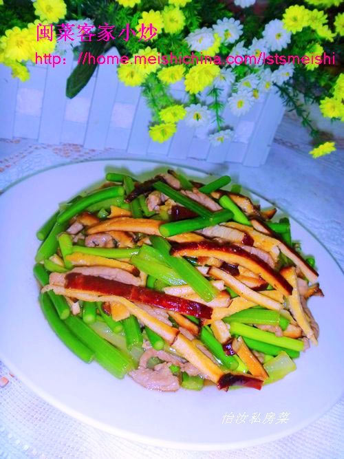 瘦肉(120克) / 蒜苔(120克) / 芹菜梗(80克) / 香干(120克)