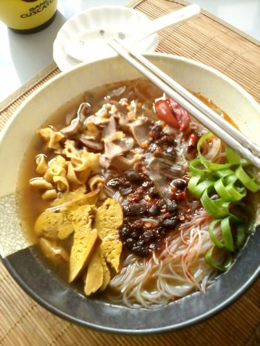 醋(适量) / 八角(2顆) / 米酒(适量) / 蘑菇精(适量) / 鹽(适量) / 蔥(2顆) / 辣椒醬(少許) / 幹辣椒(2個) / 粉絲(20克)