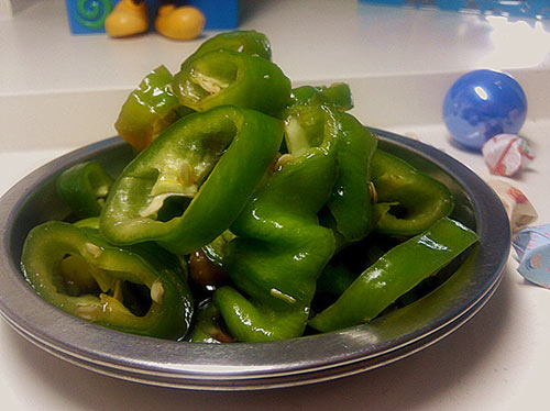 青椒一定要辣辣的才好吃哦~~~