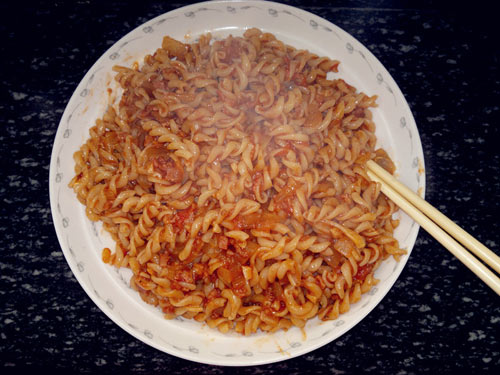 本来说好给老妈跟老弟做韭菜盒子的 可是老妈胃口不舒服 不能吃韭菜~只好做这个肉酱通心粉了~还好还好 他们很爱吃~~