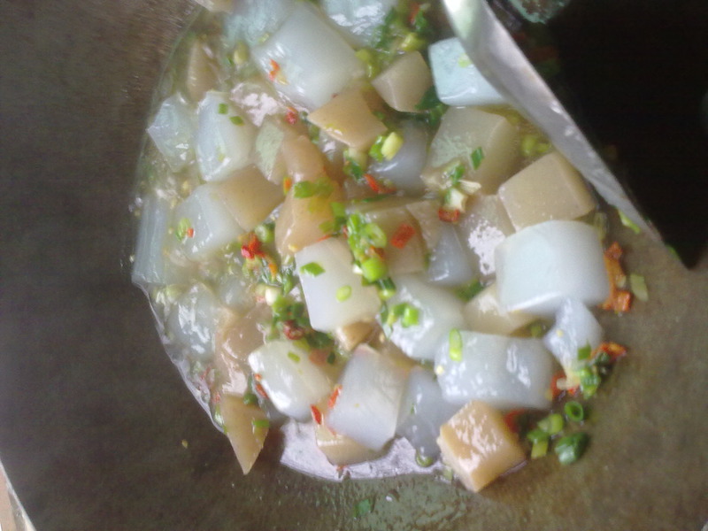 制作美食魔芋凉粉配。