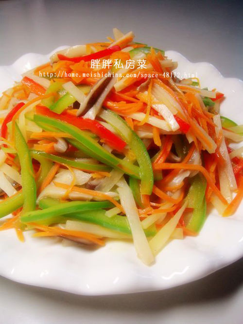 五彩笋丝烹饪方法 图片大全及制作所需厨具设备是网友推荐小编整理所得,是网友的分享推荐,是饮食文化的资源共享,中华美食文化是中华文明的具体践行,美食五彩笋丝烹饪制作就是在传承中华文化。